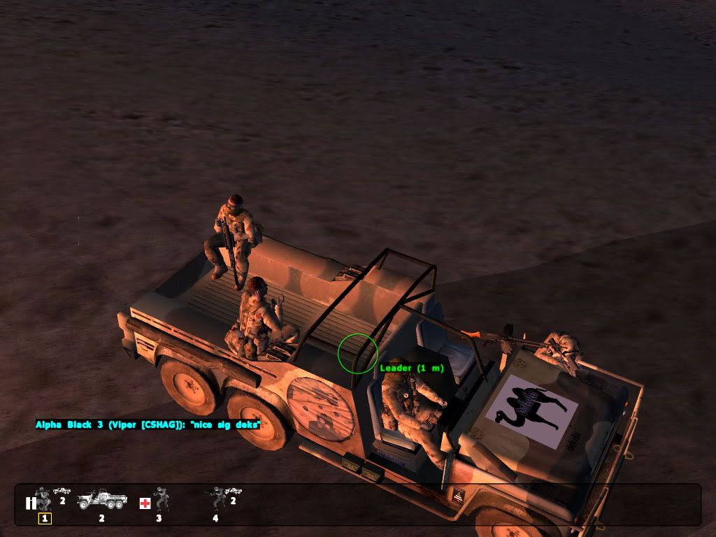 Gordo_Viper 0 Posted January 19, 2005 Author Share Posted January 19, 2005 MP Screens From this Afternoon:- S Commando, WP33 and myself pass some Desert wildlife SC, WP33 and me trailing BMP's on our Cross Bikes RPG's Strike Down Range S Commando, Ger and Myself Sneak up on OPFOR Camp Targets Down, Successful suprise assault Ger enjoying his time in a Viper Mission S Commando with Dragunov he got of one of Vipers Snipers S Commando and Sabre share Warries in back of LRPV Hooning around in a Little Bird Going for Low Level pass up Runway Oh no the Horror Snake? Gr Snake? Snakes Court and counsel in Session Sniper Hunt....This Sniper is about to have a bad day indeed Quote Link to post Share on other sites