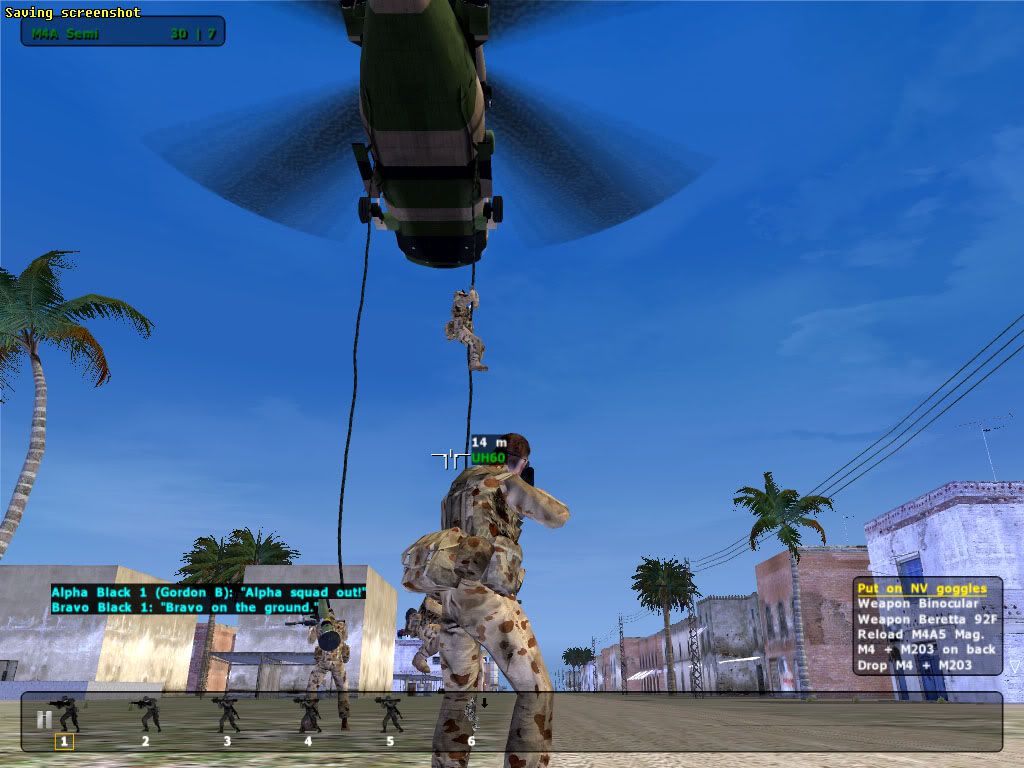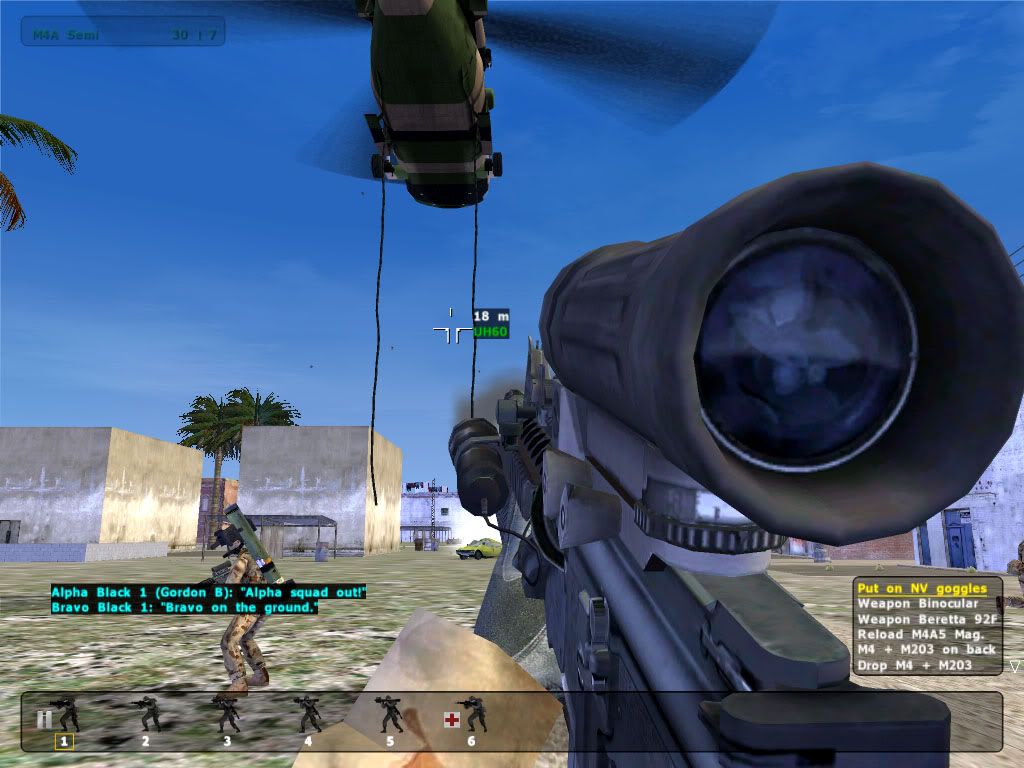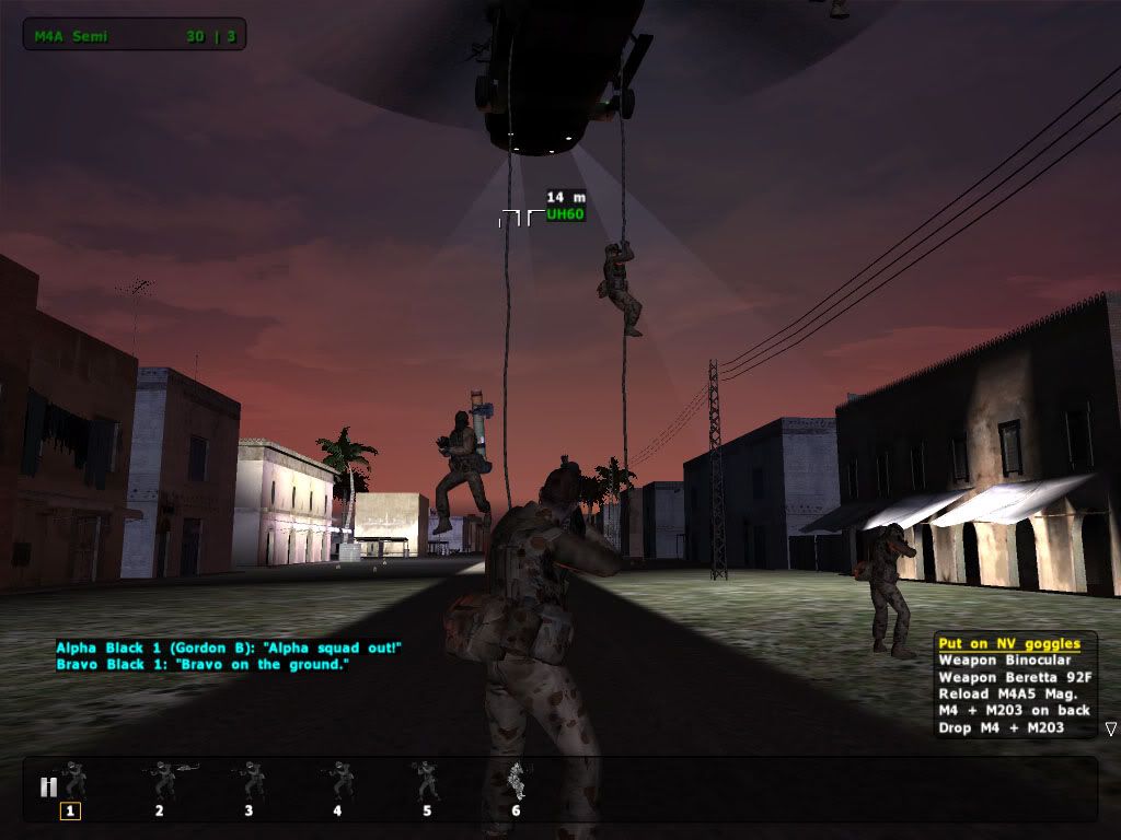 Gordo_Viper 0 Posted January 22, 2005 Author Share Posted January 22, 2005 Mp Screenies from last Night...Both from Coles New Missions on Mau Samet Island S-70 comes into postion to fast rope. I'm already out the door Fast Roping from Blackhawk ala BHD Rest of the SASR Lads fast roping One more on rope and then we're all on terra firma Good look at the ropes Rangers about to assault a Town- some real nice MOUT action Tiger ARH's Turning and Burning Quote Link to post Share on other sites