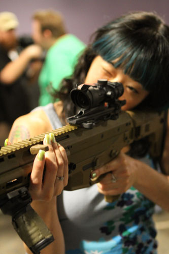 Kimi: Let’s see…we had one guy visit with a bunch of guns that we got to get our hands on. A Special Forces advisor visited and took some of us out into the field to do formations, and also to get a look at some night vision toys. When some guys from Paris visited, we went to the gun range with the personal arsenal of one of the designers. In addition to shooting a USP Compact and M4 style carbine, I got to shoot a Mossberg 500 12 gauge shotgun that had so much recoil he had to hold my shoulder so my entire body wouldn’t fly back! The sound guys went on a bunch of shoots to capture real weapon and helicopter sounds, but I wasn’t along on that. We went on a trip to an undisclosed location to capture foliage and sounds. That was great, and I’d say one of the best parts of the job, getting to travel and experience things I wouldn’t ordinarily do.