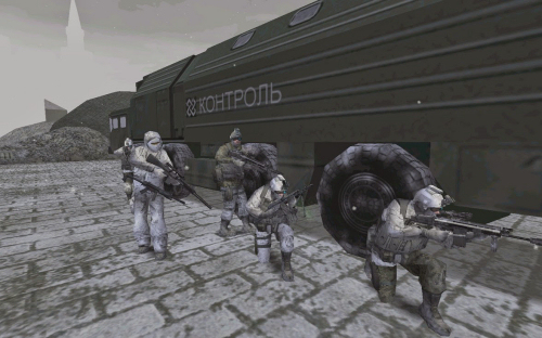 Anything remotely future soldiery the game engine will allow me to put in will be put in. We've got FS Ghosts, Bodarks, Ravens Rock, optical camo for npc's, we've got Thales talon robots filling in for ugv's and his micro air vehicle filling in for the ghost drone. And the Russians have their own share of cool stuff, as well as being decked out in gear inspired by their own future soldier program they have their own drones and gadgets and I'm hoping to eventually add a GAZ Tigr a T90A MBT and the awesome S300 mobile air defense, no promise on that though as my 3dsmax skills are of the "BUTTONS, SO MANY BUTTONS!" level at this time.