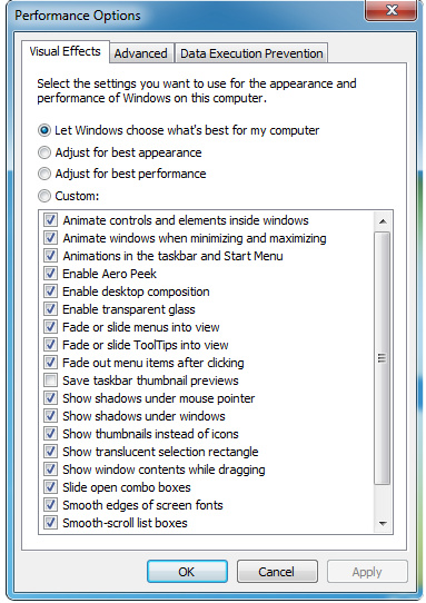 - Finally, in the Visual Effects tab, select Adjust for best performance.